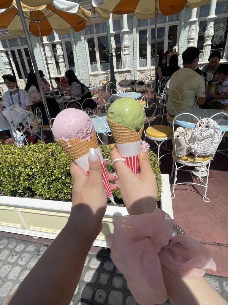 八月の後半に行ったのでとてもあつかったのでアイスを食べに行きました!!私はイチゴを食べてとってもおいしかったです♡